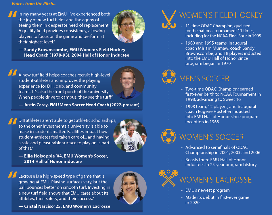 Support our student-athletes and the new turf field through an immediate gift or multi-year commitment. Give now, or contact kirk.shisler@emu.edu for more information.