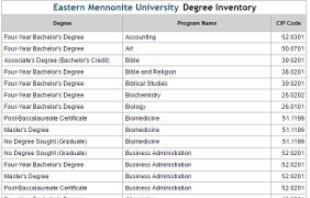 The Degree and Certificate Program Inventory is based on EMU’s current, official list of degree and certificate programs registered with the State Council of Higher Education for Virginia.