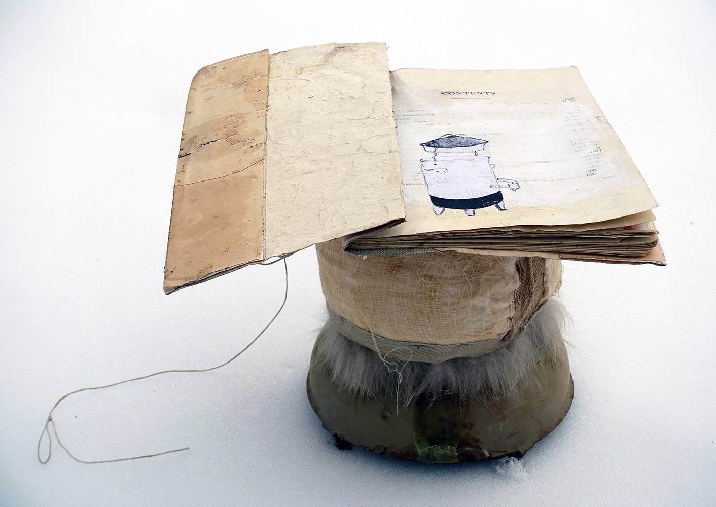 The books offer a space for happy accidents and inventiveness. The qualities of flexibility, spontaneity, and patience have always been a part of my creative process. I let the materials guide the result rather than following any preconceived ideas or plans. Through Surrealist techniques of de-constructing, re-constructing, appropriating, cutting-up, fragmenting, assembling and distorting, I attempt to discover a new balance within a precariousness of parts. My books are my survival mechanism as they let me cope with the vast amount of global information coming into my life, when browsing the internet and social media. Every time, an empty page becomes a whispering possibility.