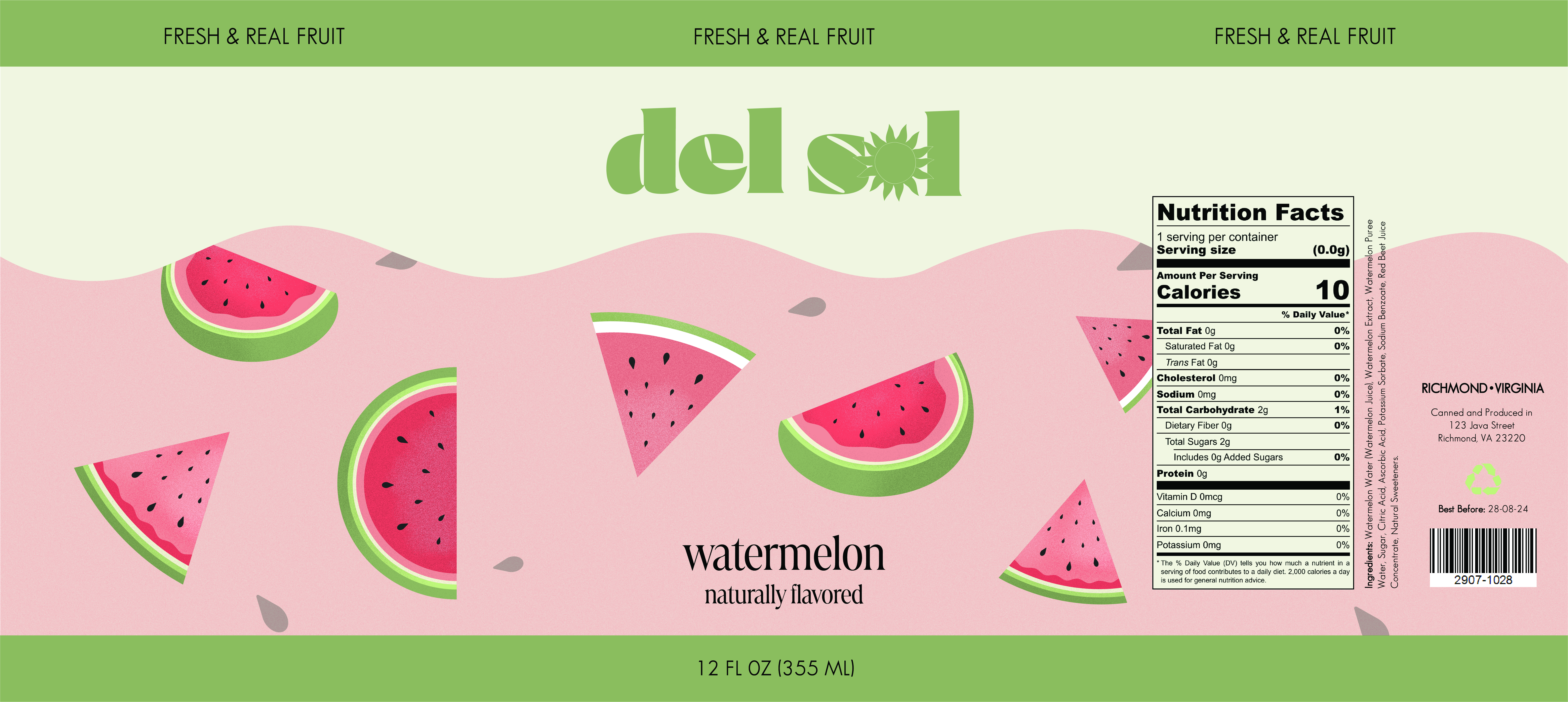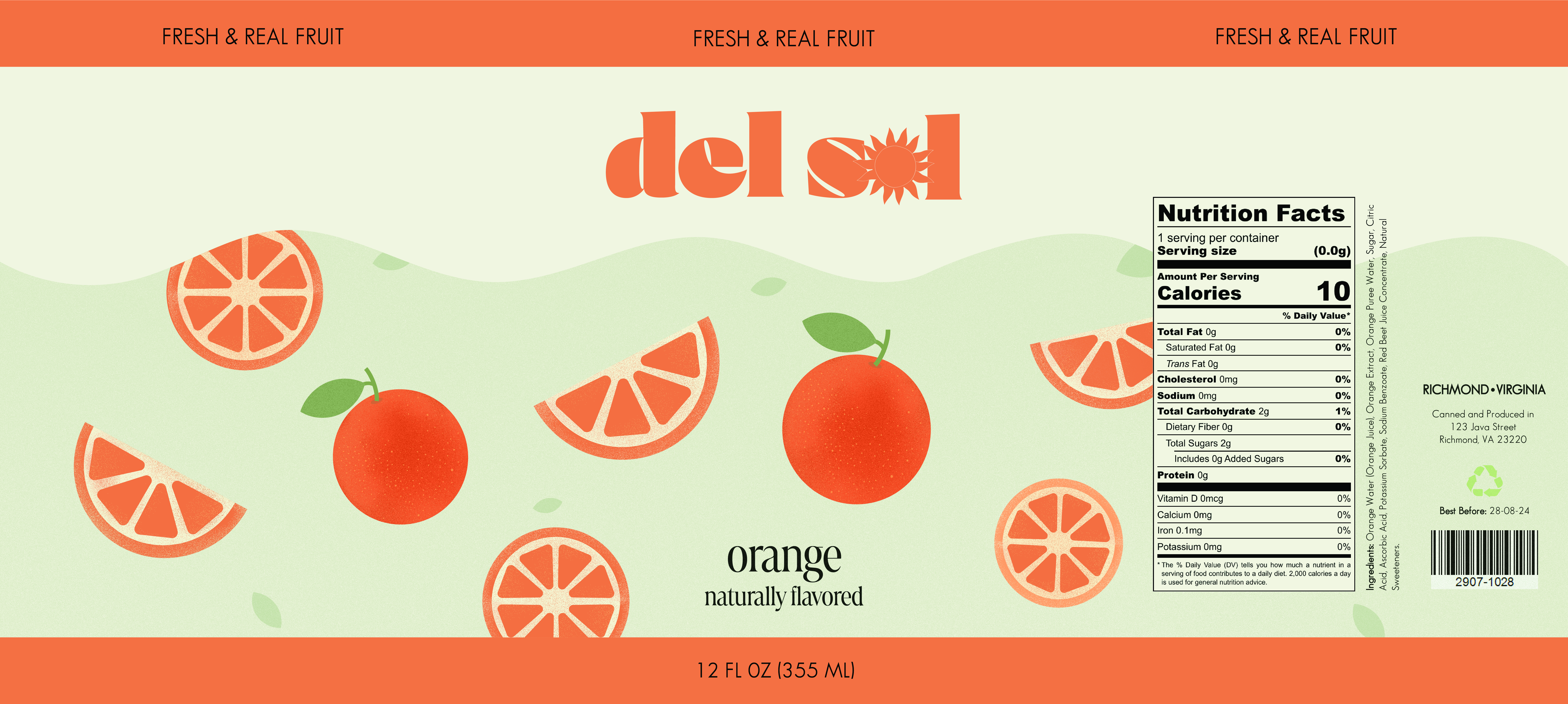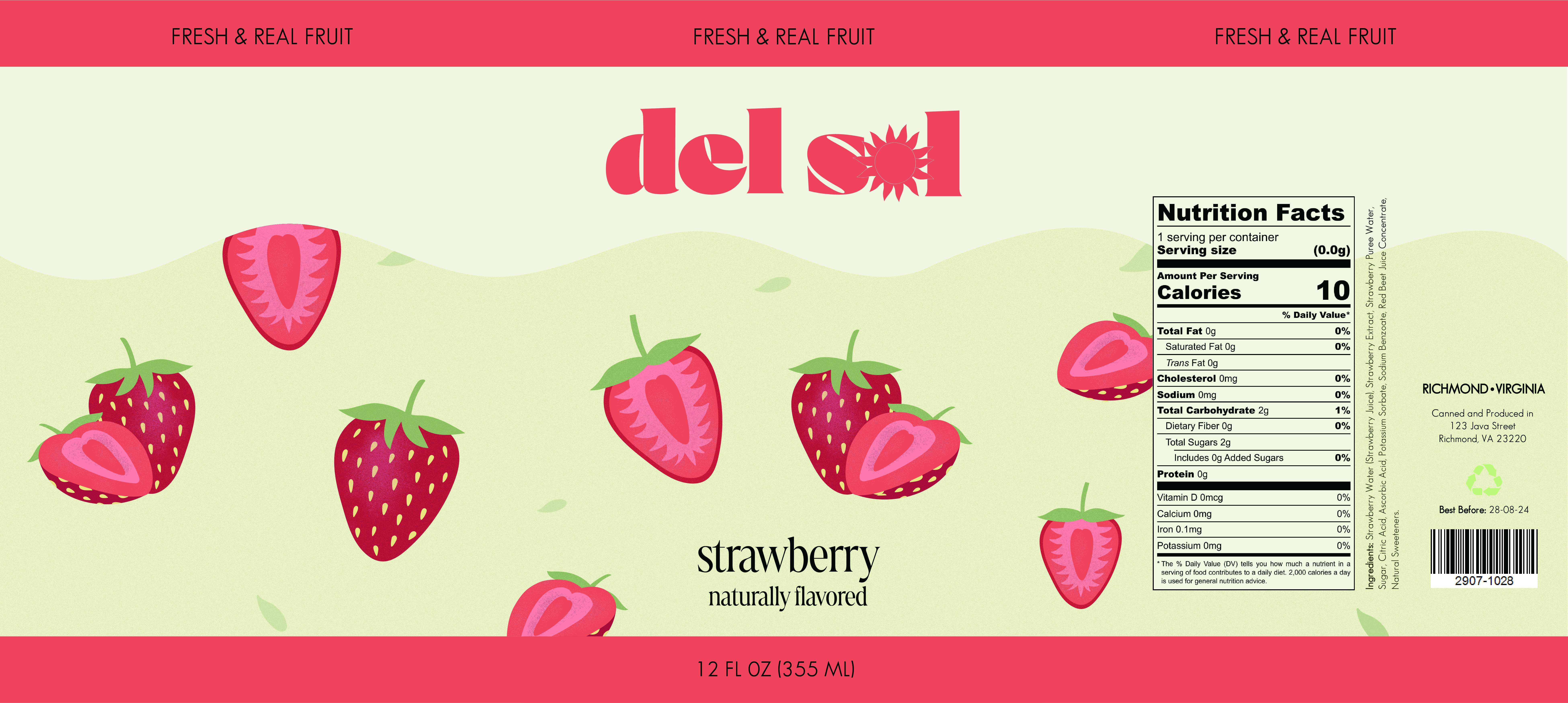 Del Sol is a packaging design project for which I made three packaging labels for a juice brand to create visually compelling designs that would be eye-catching to consumers.