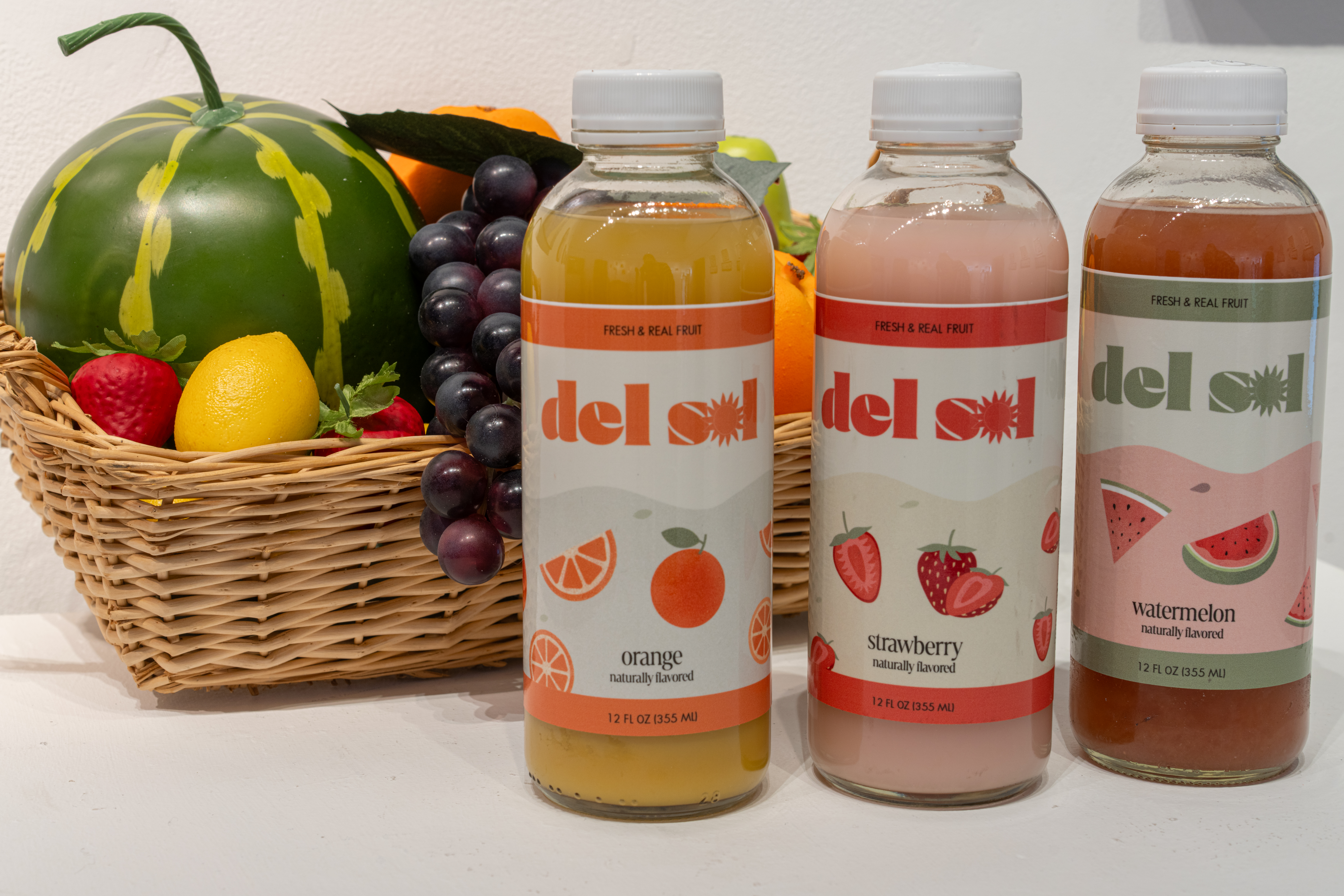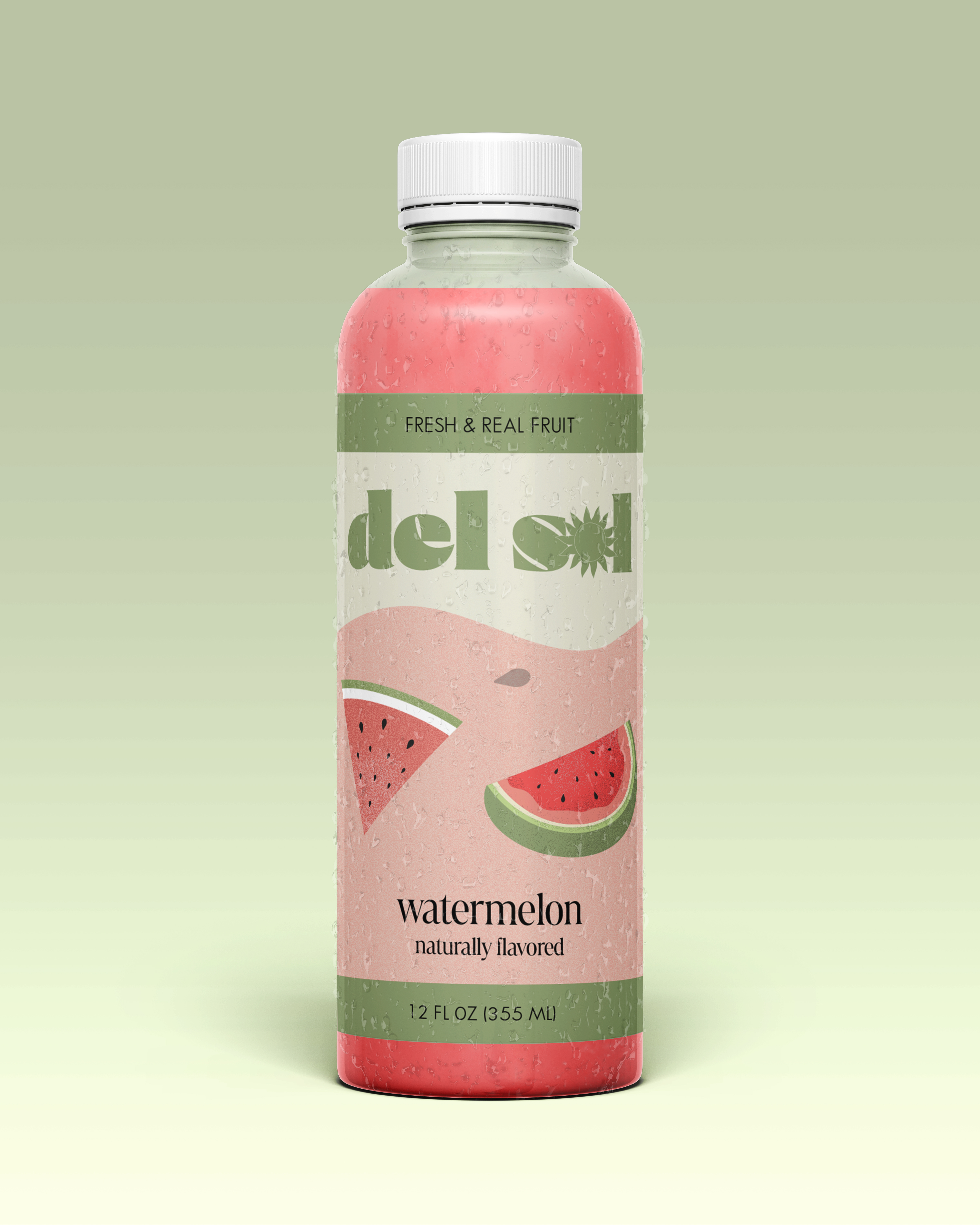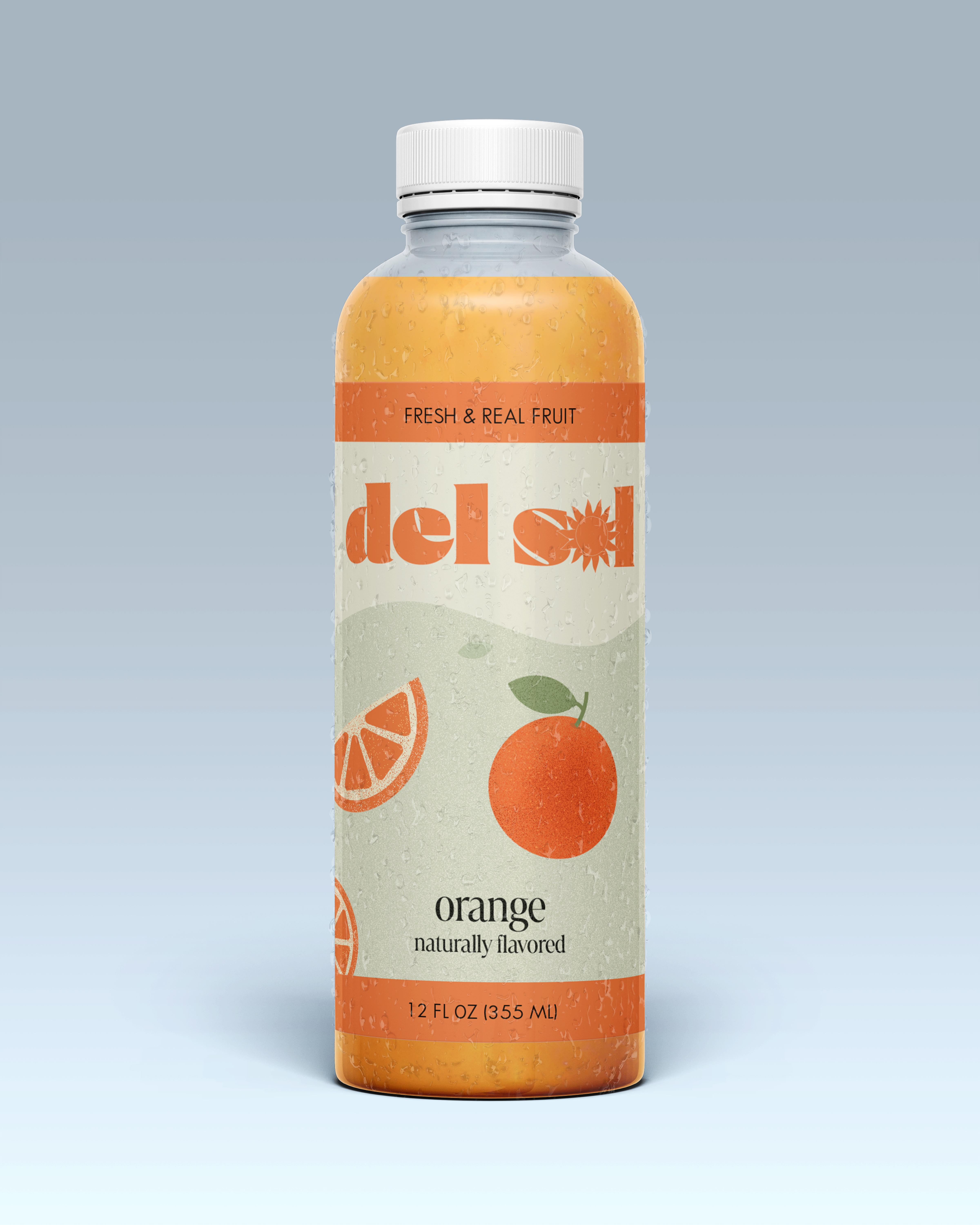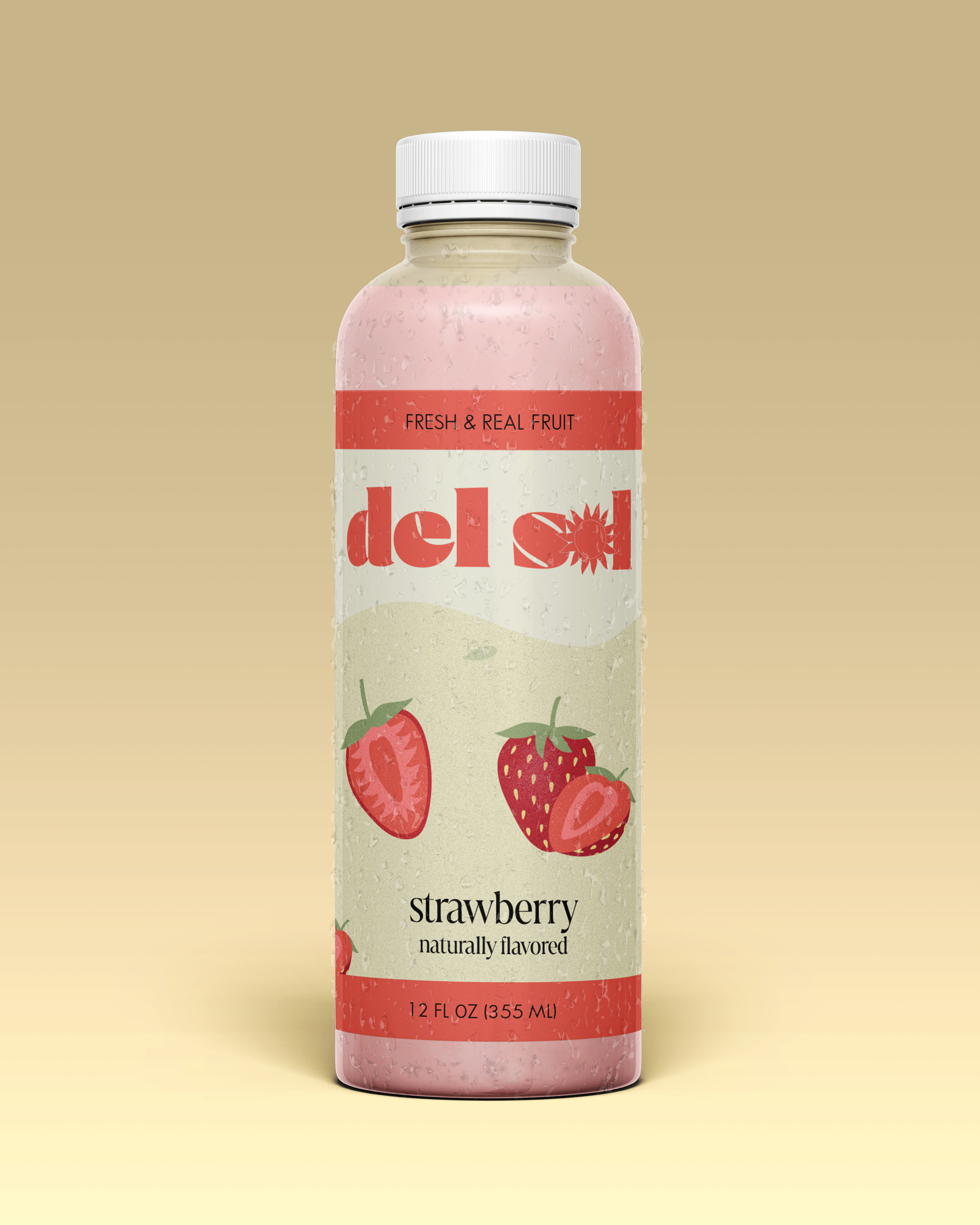 I wanted to evoke the essence of summer, delight, and freshness since fruit juice is a perfect summer drink. I named it Del Sol, meaning “the sun” in Spanish. I began by making the logo, in which I added a sun image to speak to the name. The thought was to form a memorable illustration in which consumers could understand its meaning by looking at it. For the color palette, I used pastels because it gives a soothing, bright, and calming look. Each palette speaks to the colors of the fruits found on the name of each bottle. I then selected typography that included the design's style and aesthetic. I looked for fonts that would be simple, however, keep up a lively and vibrant feel. I chose Courage for the logo, Marlide Display, and Sans Serif for the rest of the design. At last, I created different illustrations for all three of the fruits and arranged them into the final labels for my packaging design.